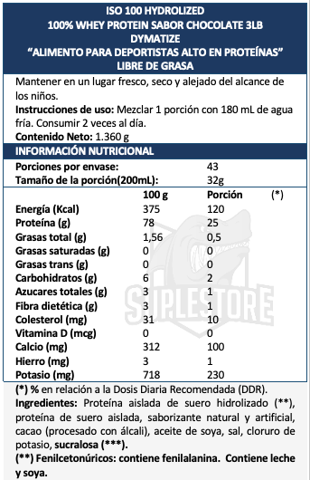 • Proteína hidrolizada de suero 100% aislado, con menos de un gramo de azúcar y grasa