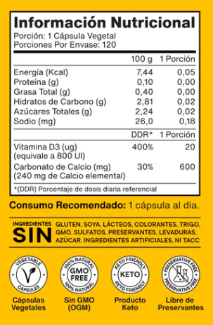 Nutracore Vitamina D3 te ayudará principalmente a absorber el calcio lo que fortalece huesos y dientes. Además, apoya el sistema inmunológico y contribuye al funcionamiento de los músculos.